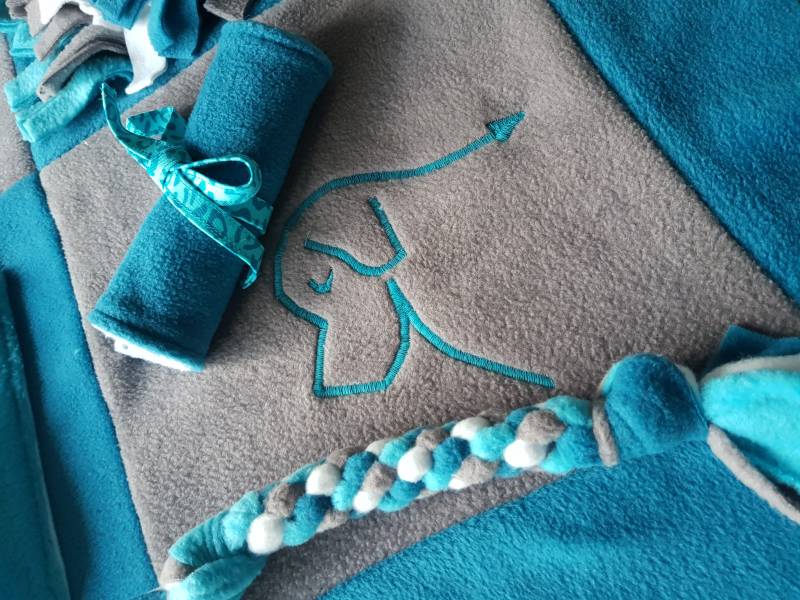 Wil je graag een korte, grappige tekst of de naam van je huisdier op het kleed geborduurd hebben, dat kan!