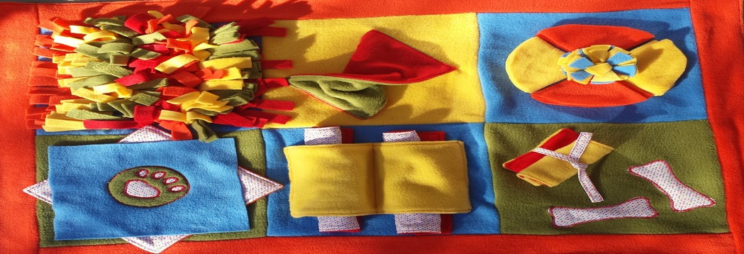 Je verstopt brokjes in dit kleed en je huisdier kan snuffelen naar al dit lekkers. Hij leert nadenken en onderzoeken met gebruik van zijn neus. Een prima alternatief tijdens een regenachtige dag, 'schrokkers' eten langzamer, kieskeurige eters zijn geïnteresseerder in hun brokjes.